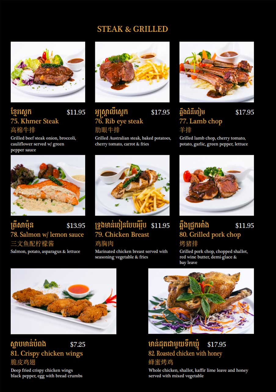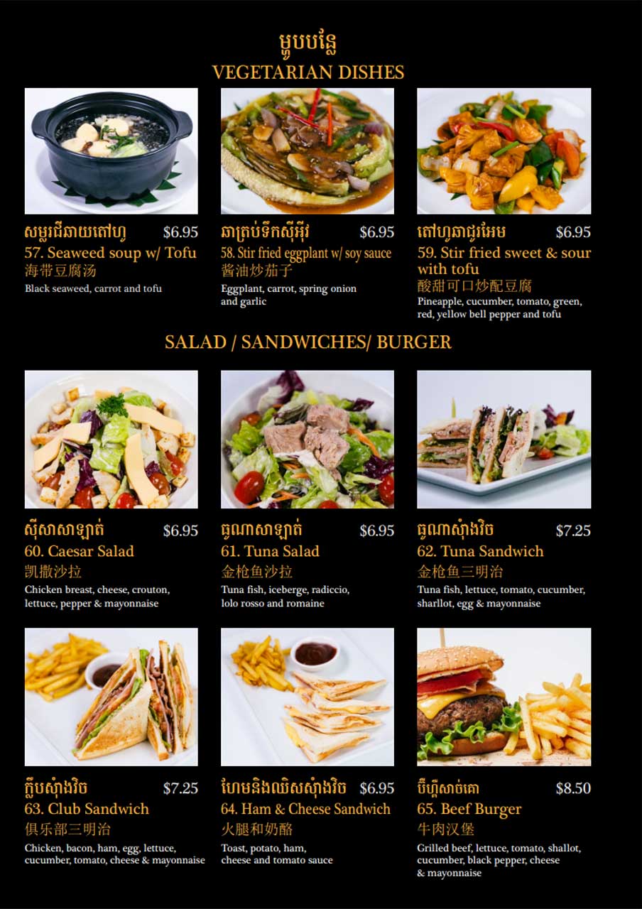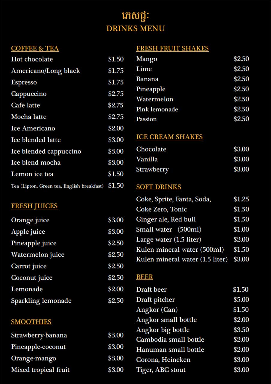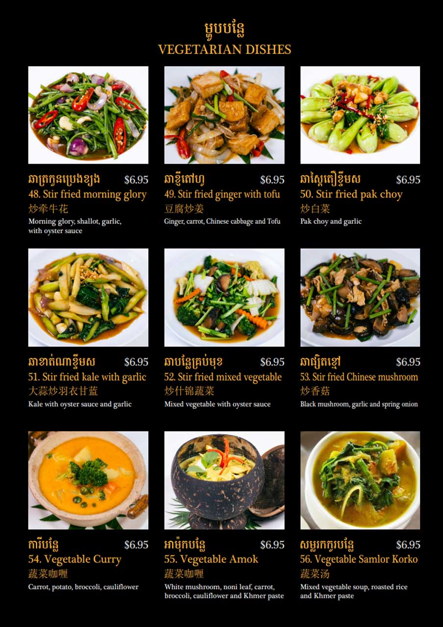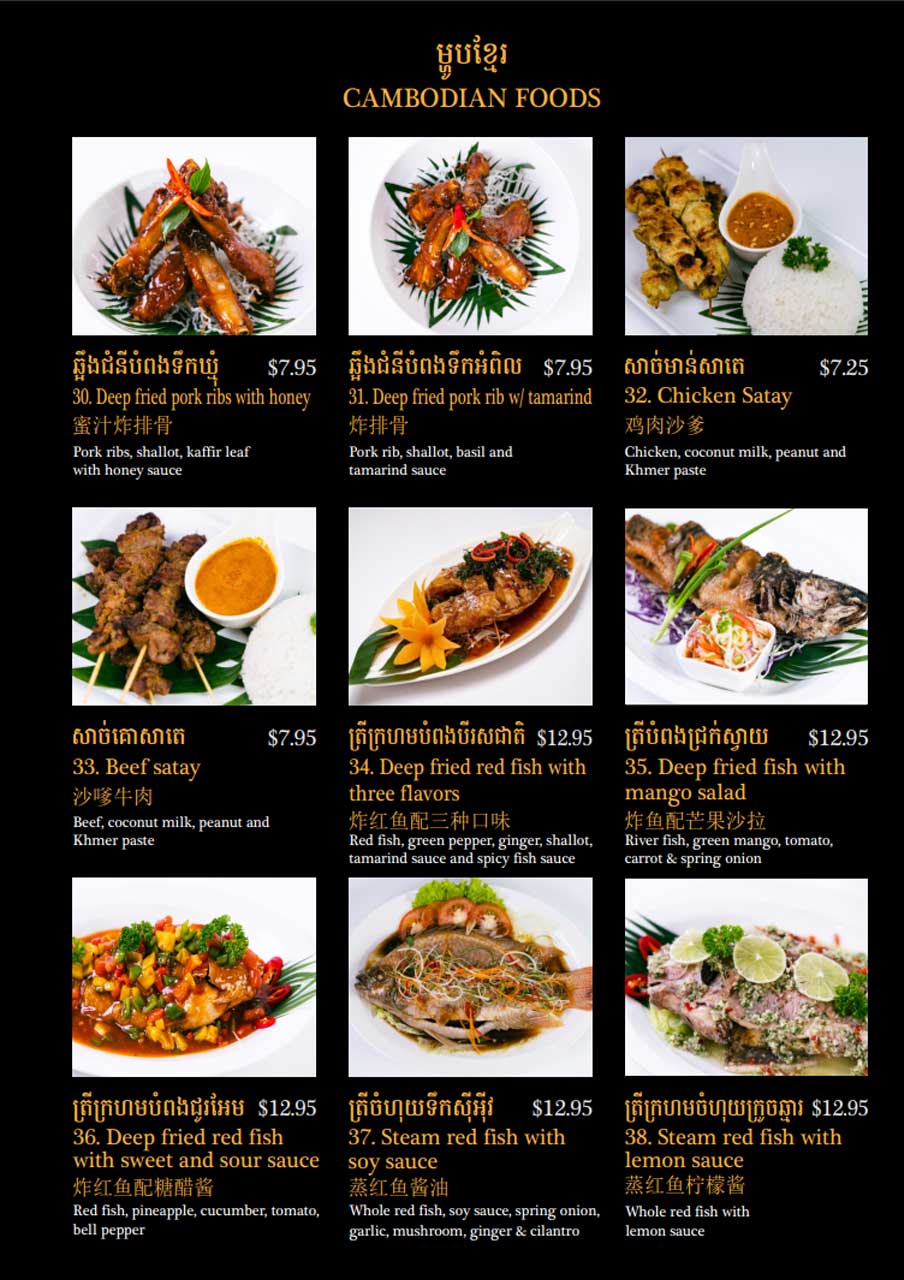 At Khmer Duerm, we invite you to experience the rich and diverse flavors of traditional Cambodian cuisine, prepared with the freshest ingredients and culinary techniques passed down through generations. Our menu offers a variety of dishes that cater to all tastes, from flavorful main courses to delightful appetizers, refreshing beverages, and indulgent desserts.